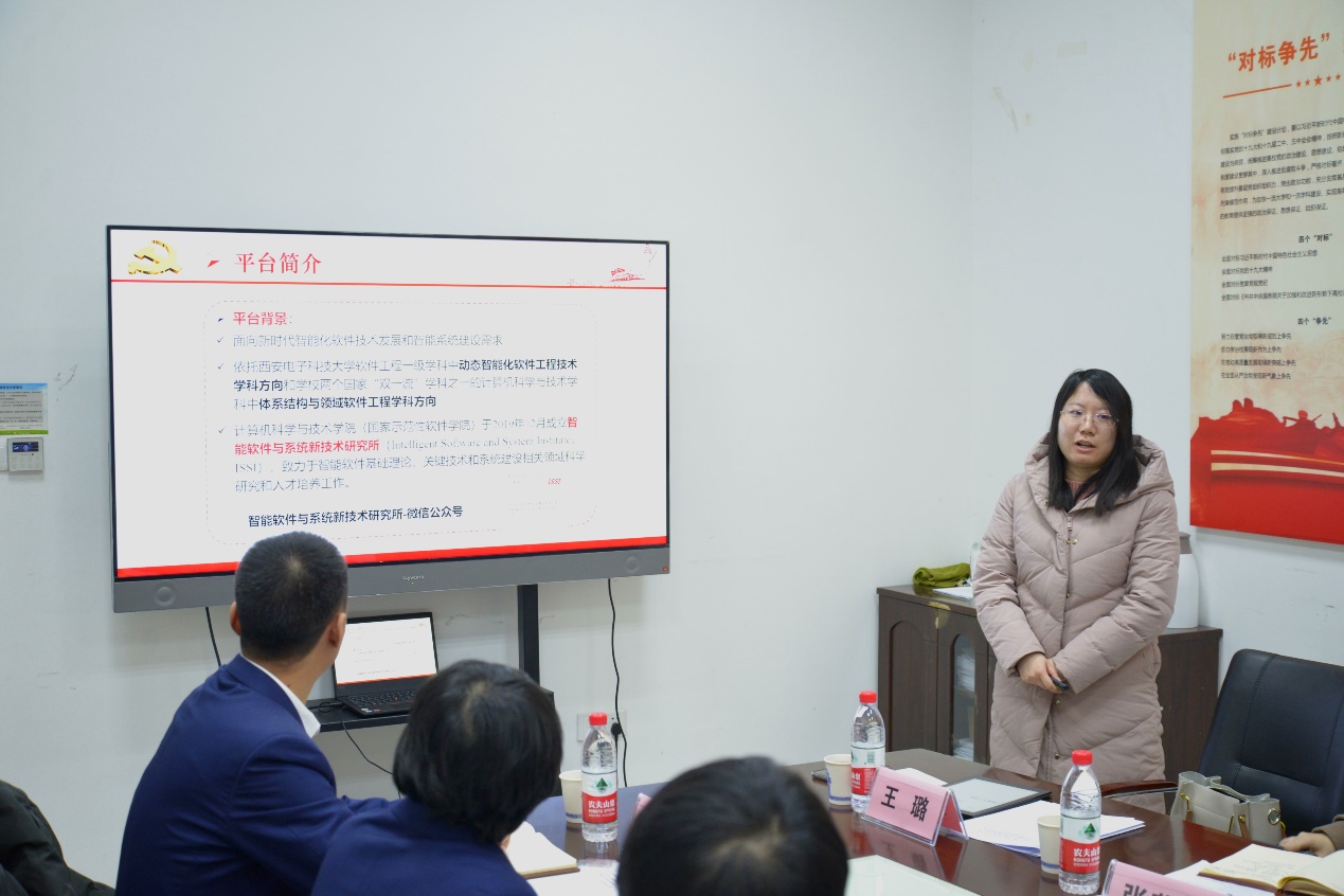 计科院院友、中国电子科技集团公司第十五研究所副所长董宝良、人力资源部冀春苗、中电太极(集团)有限公司西安研发中心党支部书记宋锋;计科院党委书记李青山、党委副书记张莹莹、副处级组织员张卫东、ISSI本硕博师联合党支部支委班子成员就基层党建工作深入探讨。会议由ISSI本硕博师联合党支部书记王璐主持。