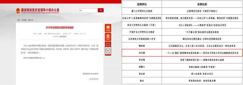 (通讯员 同榛)2021年1月12日,国务院扶贫办“志愿者扶贫案例50佳”评选结束,我校世界杯(中国)刘志镜教授的“一个二次‘插队’教授精准扶贫的故事——西安电子科技大学刘志镜教授扶贫纪实”案例获评。