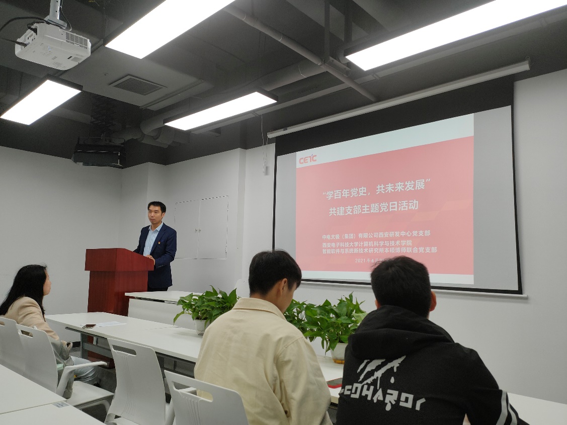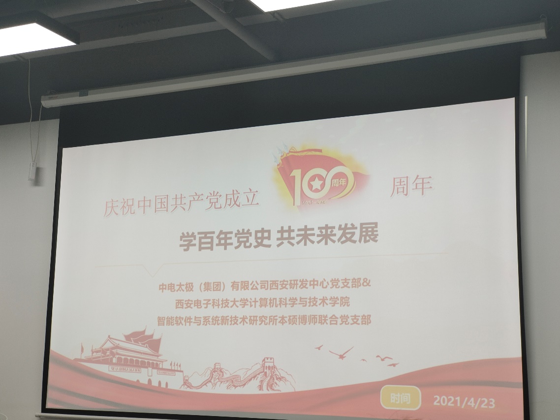 (通讯员 魏彬)为响应习近平总书记“学党史、悟思想、办实事、开新局”的号召,大力发扬红色传统、传承红色基因、赓续共产党人的精神血脉,世界杯(中国)智能软件与系统新技术研究所本硕博师联合党支部和结对共建党支部——中电太极(集团)有限公司西安研发中心党支部于2021年4月25日联合开展“学百年党史 共未来发展”主题党日活动,用党的奋斗历程和伟大成就鼓舞斗志、明确方向,用党的光荣传统和优良作风坚定信念、凝聚力量,用党的实践创造和历史经验启迪智慧、砥砺品格。活动在中电太极(集团)有限公司西安研发中心开展,由支部书记王璐主持。