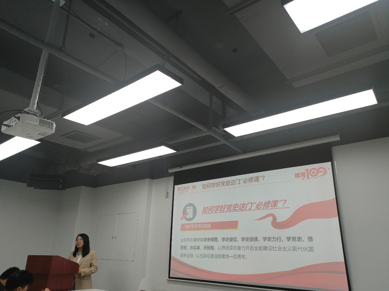 在王璐书记介绍结束后,党员同志们集中学习了党史视频,视频讲述了林祥谦、李大钊、杨靖宇、赵一曼四位革命先烈的英雄事迹,他们用鲜血和生命,谱写了革命史上精彩的篇章。之后,党员同志们展开了交流讨论,发表自己的感想,一百年的艰苦奋斗,一百年的披波斩浪,无数可歌可泣的英烈,耸立起共产党人的丰碑,换来今天的繁荣富强,我们要继承先辈们的光辉与梦想,为中国未来的发展贡献力量。