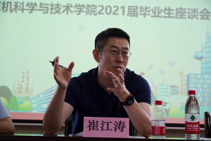 座谈会上,毕业生代表畅谈对大学生活的感悟,总结在校求学的丰硕收获,感谢在成长之路上关心与帮助自己的老师与同学,表达对学校的眷恋之情。同时,毕业生代表也结合自己大学四年的学习生活,为计科院的发展献言献策。