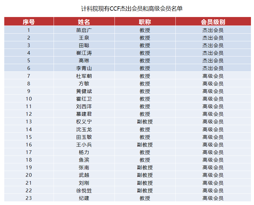 (通讯员 贠琳红 齐富)近日,中国计算机学会(CCF)2021年会员级别评审结果公布,110名CCF高级会员晋升杰出会员、351名CCF专业会员晋升高级会员。其中,世界杯平台教师高琳、李青山晋升杰出会员,刘刚、纪建、徐悦甡晋升高级会员。截至目前,学院共有6名CCF杰出会员,17名CCF高级会员。根据《CCF会员条例》,杰出会员、高级会员数分别约占专业会员数的10%和25%,能够获此殊荣是CCF对世界杯平台教师学术成就以及他们对CCF贡献和计算机专业发展的充分肯定,是一项很高的荣誉。