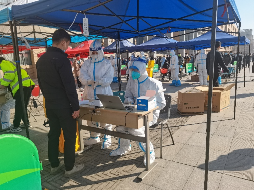 疫情就是命令!为配合南校区全员核酸检测,12月21日上午学院招募大学生志愿者,2018级本科生同学积极报名,群里党员同学喊出了“党员先上”的口号。志愿者同学们纷纷穿上隔离服,冲在抗疫一线,投入了紧张的检测工作。