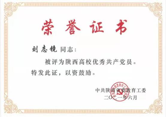 八、刘志镜教授获陕西高校优秀共产党员