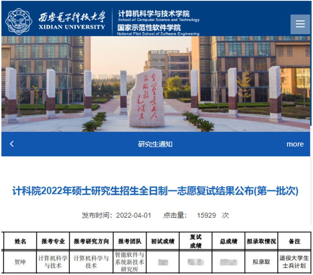 (图文来源西安电子科技大学新闻网)人间最美四月天,在西电退伍大学生士兵群体里传来好消息,贺坤同学通过“硕士研究生招生退役士兵专项计划”被世界杯(中国)拟录取。