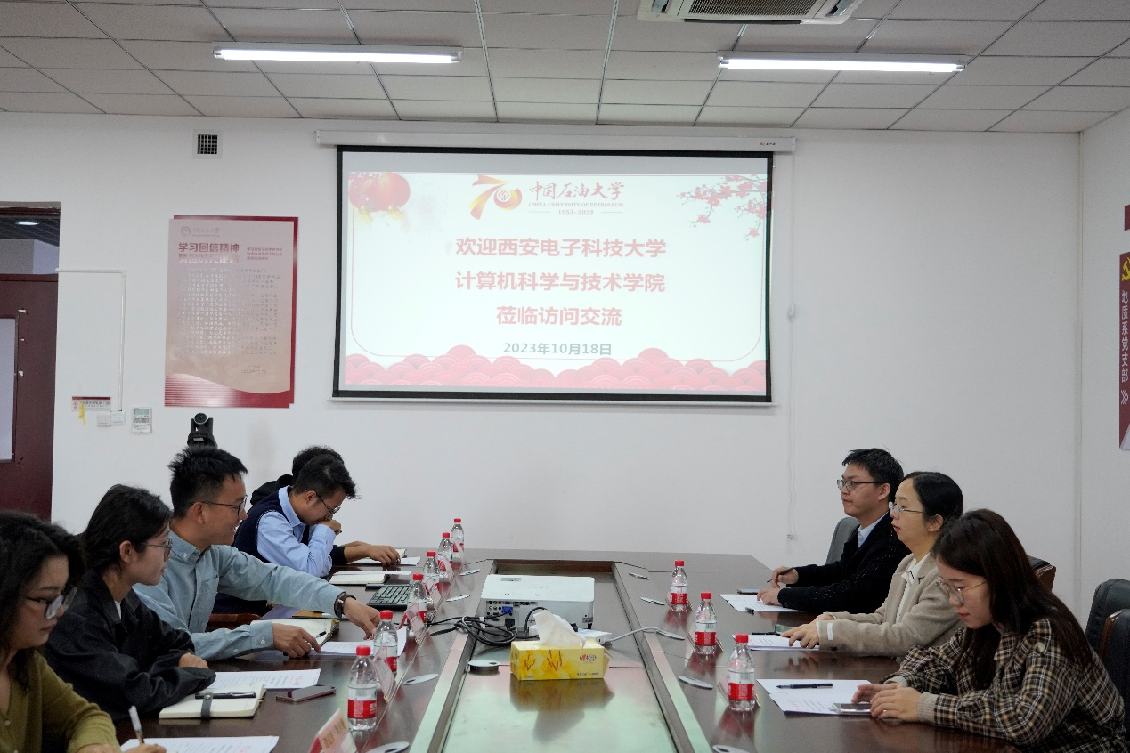 双方围绕队伍建设基本情况、党建工作、交换生管理、社会实践和就业工作等方面,进行了深入探讨。胡瑞谈到,西电红色底蕴深厚,电子信息特色鲜明,计科院在本硕博师联合党支部建设、促进毕业生高质量就业等方面都有值得借鉴的思路和举措,希望能加强业务交流,选派更多石油学院优秀学子赴西电计科院开展交换生培养。张莹莹表示,学院会以落实对口支援为契机,在党建带团建、交换生接续培养、就业互助、联合社会实践、学工干部队伍建设等方面进一步加强联动与合作。