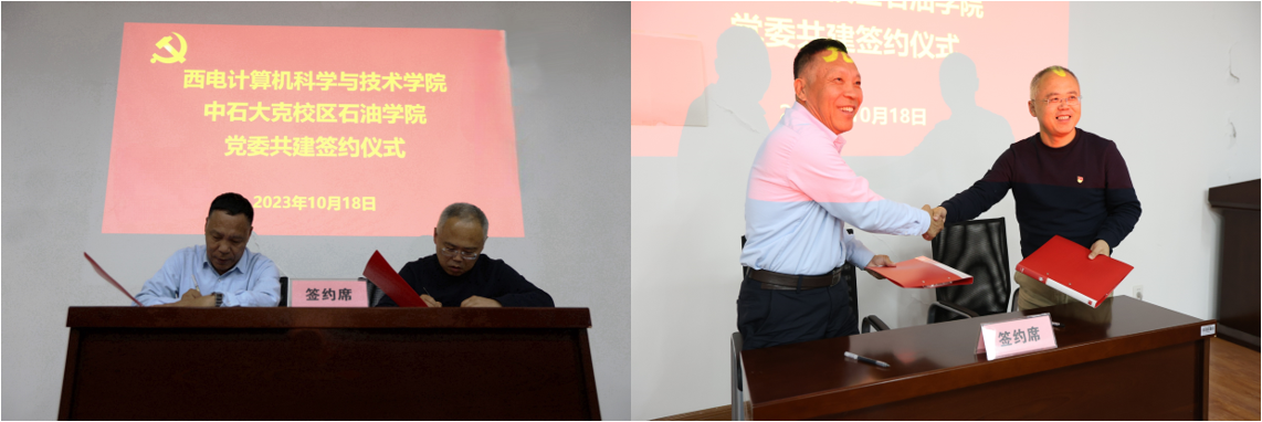 双方现场签署党委共建协议。与会成员围绕学科援建、党支部建设、党建带团建、课程建设、青年教师指导、交换生管理等方面进行了卓有成效的研讨交流。双方均表示,克拉玛依校区石油学院和西电计科院办学特色鲜明且优势互补,今后将珍惜党委结对共建情谊,加强工作谋划对接和沟通交流,深化建立对口援助关系以来的合作成果,以高质量党建推动高质量援建,促进双方高质量发展。