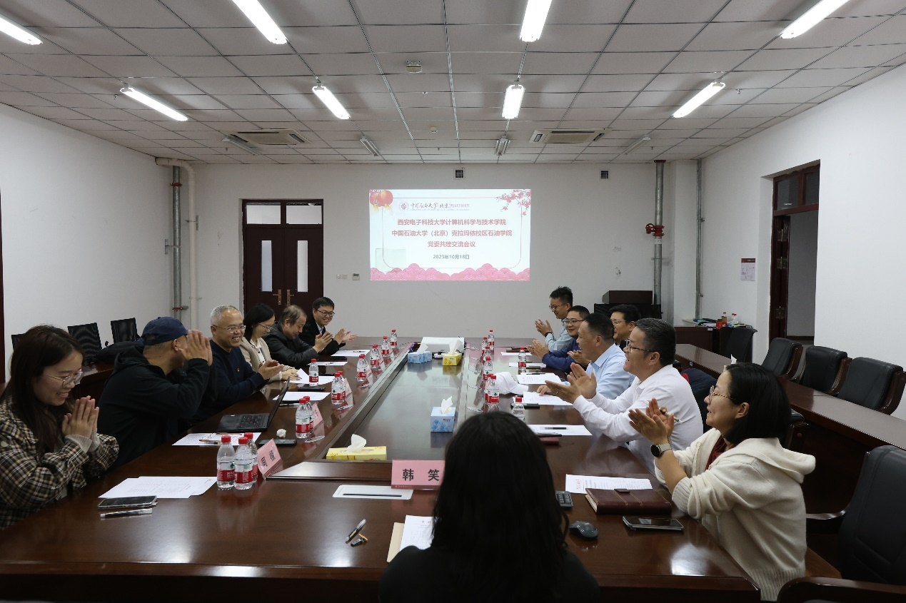 谢庆宾对西电计科院一行来访表示欢迎,介绍了克拉玛依校区的发展定位和办学模式,对西电计科院一行来院指导表示感谢,希望以党委共建为契机加强交流与学习,促进学院建设发展。党委副书记胡瑞介绍了石油学院党建工作思路以及党建引领学生培养、课程思政等具体举措。
