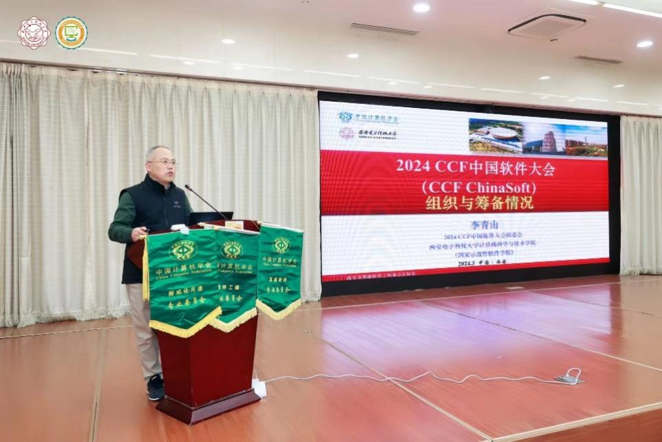 大会程序委员会联合主席、组织委员会主席李青山教授从大会基本情况、举办方案制定、往届大会概况、会议组织架构、会议协同体系等五个方面详细介绍了大会情况。CCF中国软件大会(CCFChinaSoft)及其前身全国软件与应用学术会议已成功举办二十二届,现已成为中国软件界的年度盛会。2024年大会将由CCF软件工程专委会、系统软件专委会、形式化方法专委会以及西安电子科技大学共同承办,西安高新区管委会为大会支持单位。大会预计将吸引软件等领域学术界、工业界、教育界超过2500人参会,将继续成为软件相关领域学术分享、技术沟通、教育探讨、人才吸引、产业发展等全面交流与碰撞的平台。李青山重点回顾了由西安电子科技大学成功承办的2021届大会以及由复旦大学成功承办的2023届大会。2021届大会采用线上线下相结合的方式举行,注册人数超过1200人,参会单位近190家,开幕式与大会报告在线人数累计超过7万人次。特别地,大会承载了36个论坛与3项竞赛,达到当年历届最多。2021届大会的成功举办为本届大会各阶段的筹备工作积累了充足的经验,承办团队会再接再厉将今年大会的举办提升到一个新的层次。同时,李青山也诚挚地邀请高新区企业、行业协会等以协办单位或赞助商身份参与大会,组委会将全力作好协同对接工作。