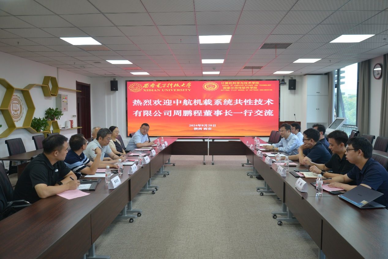 李青山代表学院对中航机载系统共性技术有限公司周鹏程董事长一行到访表示热烈欢迎,并简要介绍了学院围绕基础软件领域近年来开展的科学研究工作、服务国家重大战略的大项目和大平台建设情况以及双方前期合作等。
