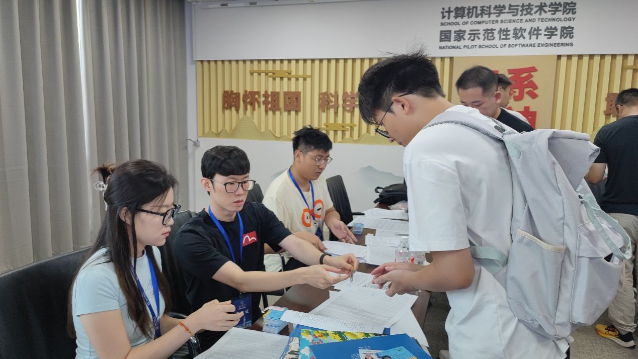 早上7点54分,学院便迎来了2024级第一位硕士研究生新生张持生,随着“咔嚓”一声,志愿者同学为他记录下了这一特别的时刻。别具匠心的布景,迎新现场打卡氛围瞬间拉满,这是专属于新生们的仪式感。“与来自全国各地的同学们相遇,让我非常期待在这里开启崭新生活,希望能在计科大家庭不断学习进步,收获成长、实现理想”张持生谈到。