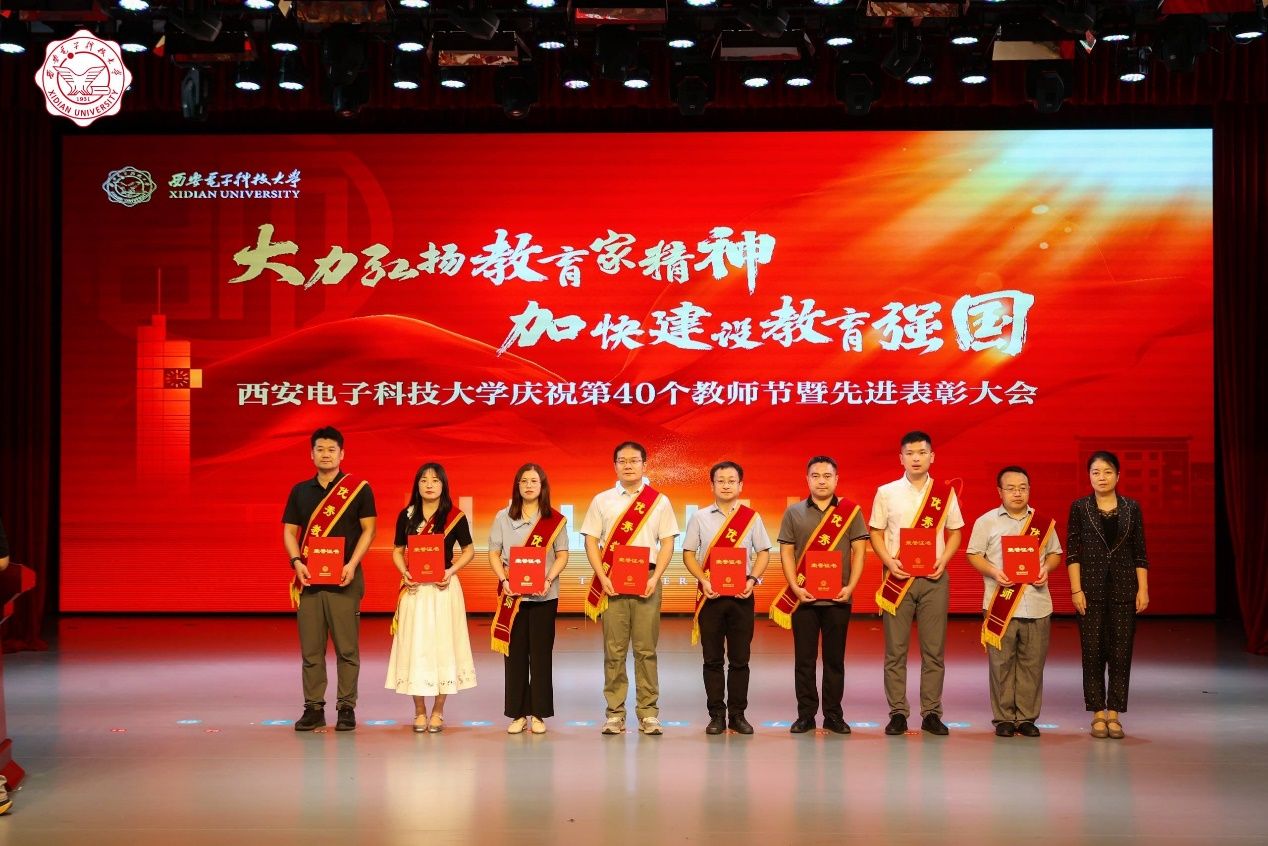 9月10日下午,西安电子科技大学庆祝第40个教师节暨先进表彰大会在南校区大学生活动中心小剧场举行。世界杯(中国)谢琨教授获校首届“教书育人典范”称号,权义宁教授获校从教30周年荣誉表彰,李青山教授带领的智能软件工程教学科研教师团队获第三批西安电子科技大学黄大年式教师团队荣誉,高琳教授获2023~2024年度校“师德标兵”称号,祁建军副教授、徐偲副教授、汪龙老师获2023~2024年度校“优秀教师”称号,张亚菲老师获2023~2024年度校“先进工作者”称号,计算机工程系、学院机关获2023~2024年度校“先进集体”称号。
