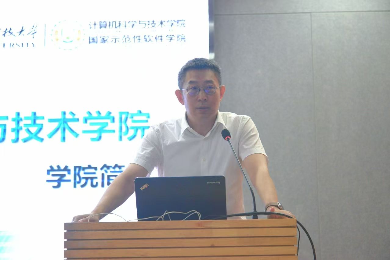 最后,学院党委书记李青山围绕“自豪、传承、精气神”三个关键词寄语研究生新生。他回顾了西电的红色基因和电子信息特色,并谈到学院自成立以来,就肩负着为党和国家事业培养专业人才的重任,希望每位新生都能以进入计科院为荣,收获自己的发展增量;结合学院的历史地位和现实成就,对建院六十余年凝练出的“三系精神”内涵和“严谨、担当、勤勉、开放”的院训进行解读,号召同学们在实践与学习中传承宝贵精神财富;最后,他希望每位同学涵养积极向上的“精气神”,自觉锤炼勤勉努力的品格,尽快融入学院的学习生活,珍惜时光,在矢志创新中找准定位、笃定前行。