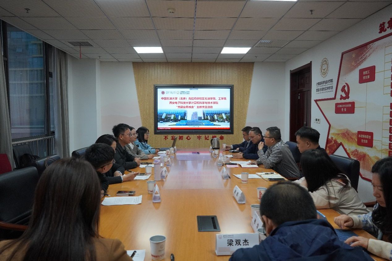 中石大克校区石油学院党委书记田守嶒以《发扬回信精神,服务国家战略,打造“一带一路”能源行业一流学院》为题介绍了石油学院创建学校标杆院系特色做法、打造多元师资队伍、服务新疆九大产业集群、打造应用型人才培养新模式等工作成效;工学院党委书记谢庆宾介绍了工学院全国党建工作样板支部和“双带头人”教师党支部书记工作室建设、多元师资队伍打造、特色优势专业建设、服务石油化工领域国家战略需求开展科学研究等工作情况,均谈到欢迎西电计科院多多选派优秀教师来到校区,促进青年教师成长,加强双方合作交流。