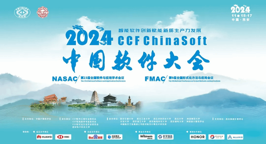 大会由中国计算机学会(CCF)主办,CCF软件工程专委会、系统软件专委会、形式化方法专委会、西安电子科技大学承办,世界杯平台(国家示范性软件学院)具体落实,西安市智能软件工程重点实验室负责实施,得到西安高新区管委会的大力支持。同时,大会由西安交通大学、西北工业大学、西北农林科技大学、西北大学、陕西师范大学、长安大学、西安理工大学、西安建筑科技大学、西安邮电大学、中国航空工业集团公司西安航空计算技术研究所、陕西省计算机学会协办,由华为技术有限公司、汇丰科技中国、蚂蚁集团、百度集团、知存科技有限公司、北京轩宇信息技术有限公司、荣耀集团、望安科技有限公司、北京开元维度科技有限公司等作为赞助商。