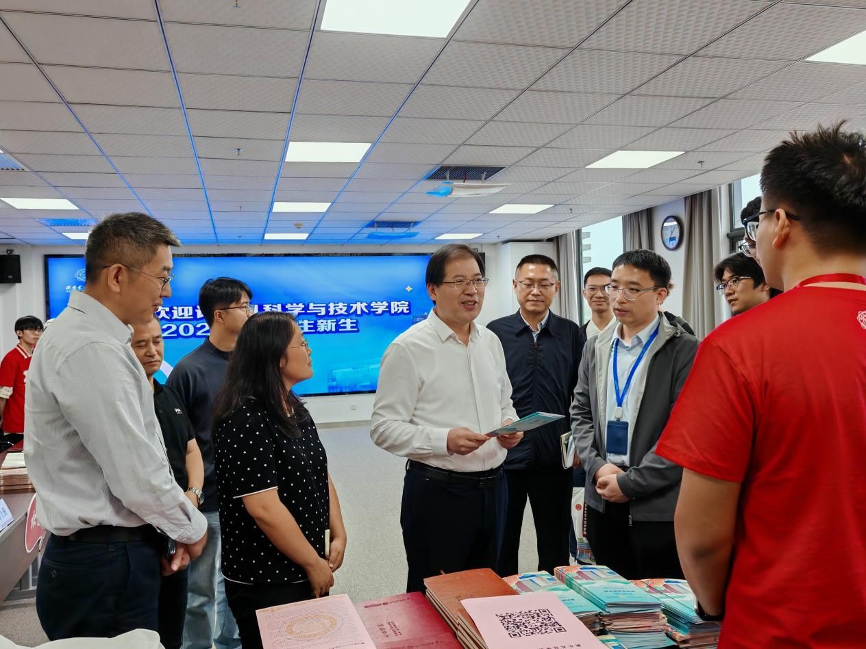 中午,校长高新波一行来到学院报到点,详细了解迎新工作流程和新生报到情况,与新生们亲切交流,细致询问大家的学习生活安排和初入校园体验,并与迎新志愿者们亲切合影留念。