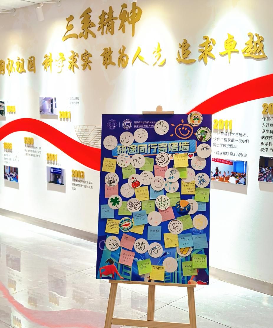 为搭建学院毕业生与新生间的精神桥梁,学院在迎新现场精心设置“研途同行寄语墙”,以手写寄语为载体,让跨越时光的鼓励与期许,成为新生开启研途的第一份精神礼物。新生们可以抽取来自2025届毕业学长学姐们所手写的暖心寄语,一句“祝你们一路繁花,永远相信研途星光,永远爱人与被爱”,让大家在字里行间感受到浓厚的鼓励与期许。不少新生也尽情书写下自己的心愿与感悟,驻足阅读彼此的留言,感受着计科大家庭的温暖与传承。
