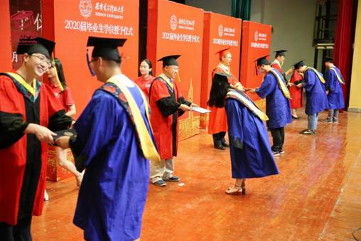 伴随欢乐的乐曲声,授位仪式有条不紊地进行。杨宗凯校长与学院学位评定委员会成员李青山、崔江涛、沈玉龙和高琳四位教授共同为计科院的博士、硕士毕业生一一执拨穗礼。“祝贺你学有所成”,在授位的过程中,杨校长和同学们亲切交谈,并向他们表示祝贺。毕业生同学们接过证书,纷纷鞠躬致谢,并与授位领导和老师们合影留念。