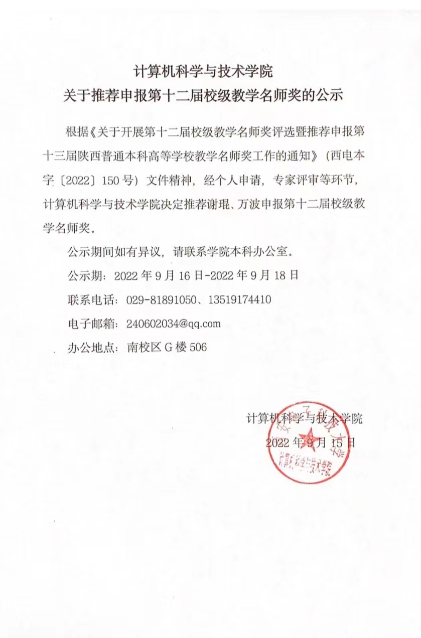 世界杯(中国)关于推荐申报第十二届校级教学名师奖的公示