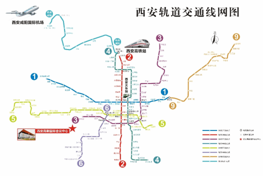 2)公共交通:机场大巴城西客运站线一到达城西客运站下车→城西客运站乘坐公交272路/186路一到达西三环天谷六路站下车一步行约787米,约12分钟到达西安高新国际会议中心,全程约1小时50分钟。