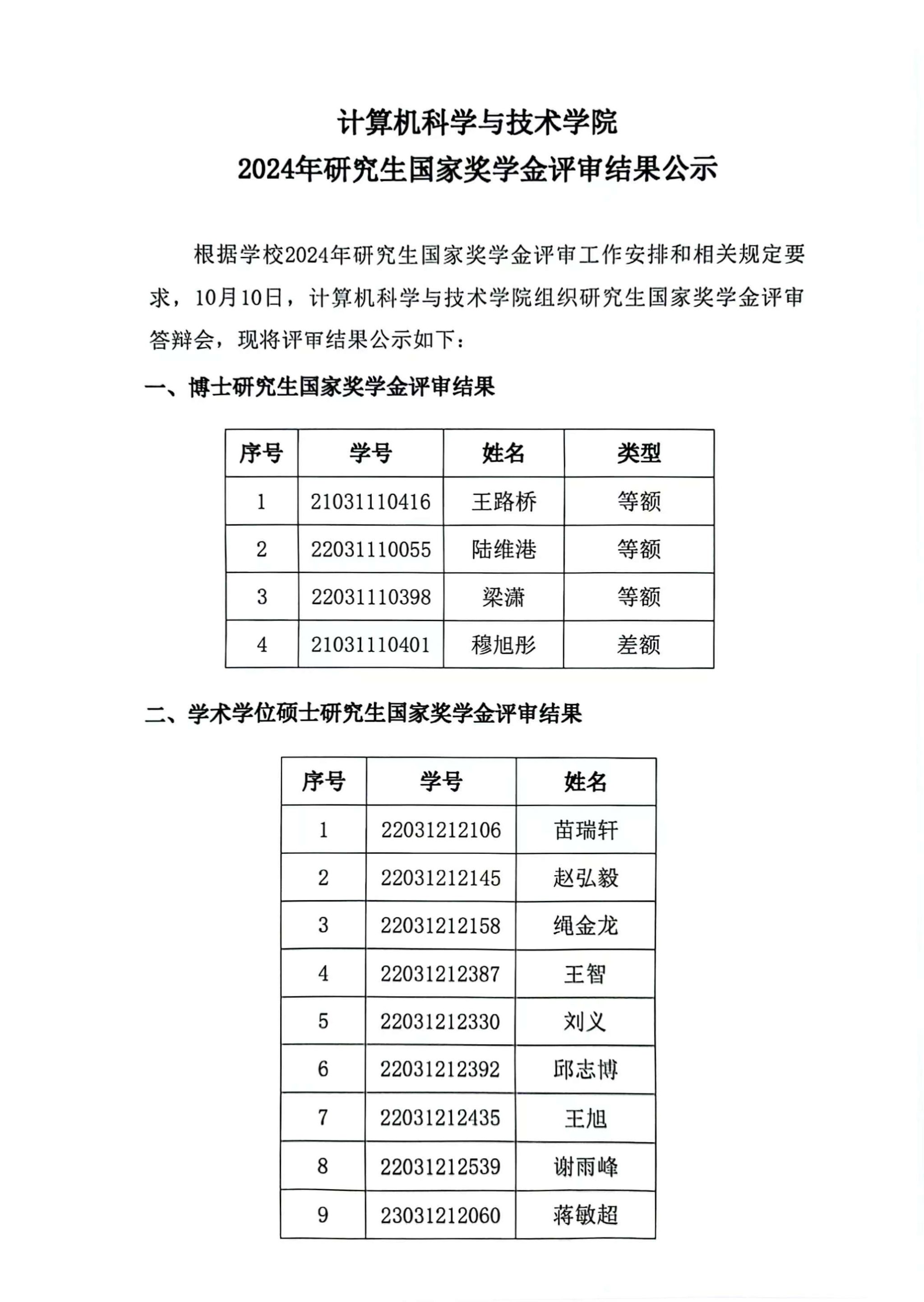 世界杯(中国)2024年研究生国家奖学金评审结果公示