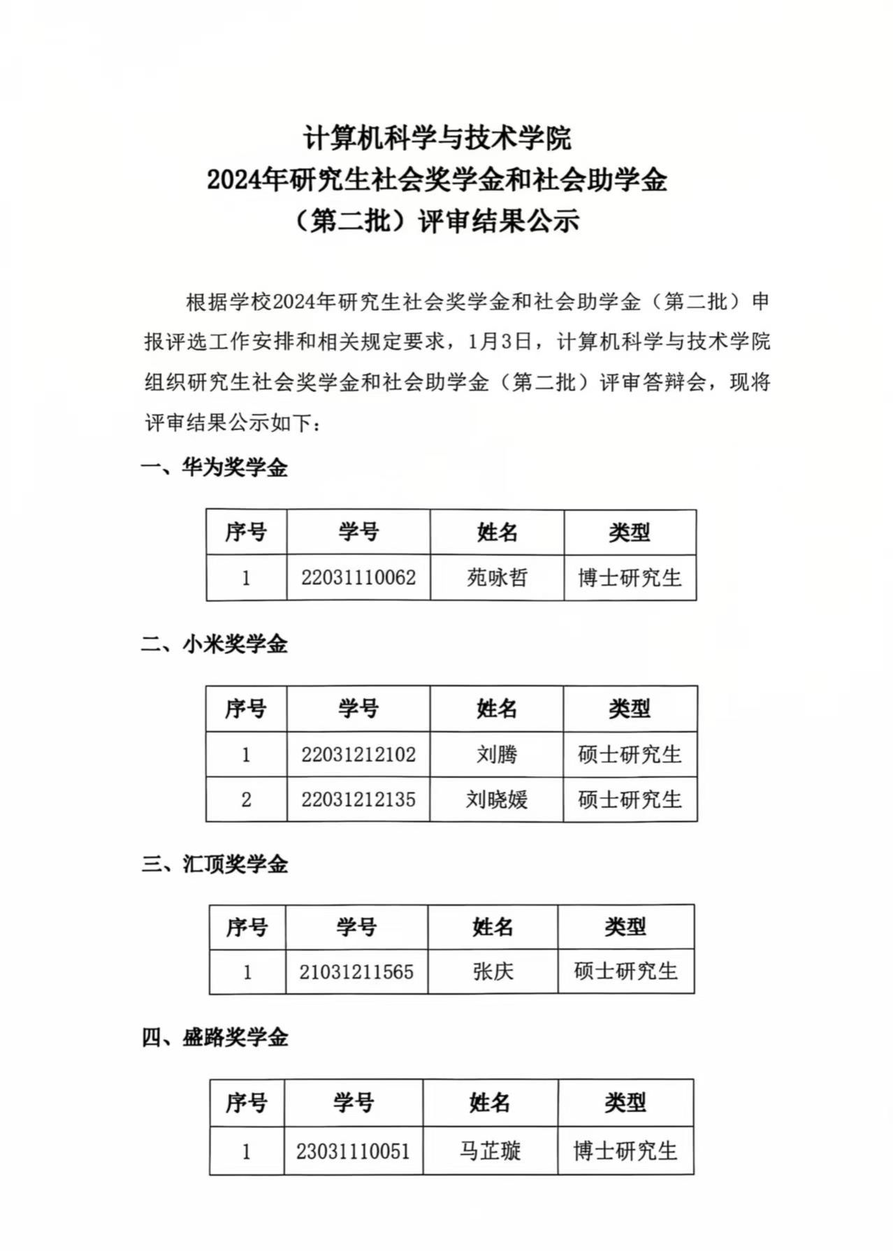 世界杯(中国)2024年研究生社会奖学金和社会助学金(第二批)评审结果公示