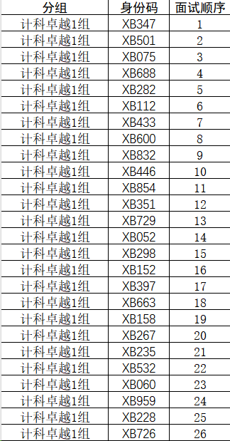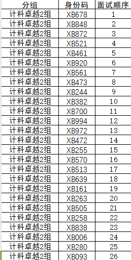 1.本次面试为双盲面试,面试中不得介绍姓名、学号等个人信息,面试身份码为唯一身份标识,面试自我介绍时说明身份码即可。请根据面试身份码查看面试分组、面试顺序等信息。(见附件)