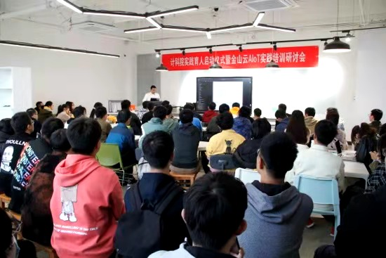 下午,金山云技术专家丁明辉、刘不凡在G楼308为80多名世界杯(中国)的本科生进行了“金山云AIoT实验培训”,培训以“项目育人”为切入点,内容涉及:金山云智能家居系统架构,金山云智能家居模块接口API,金山云智能家居编程模式,金山云人工智能图像处理接口以及使用模式等内容。培训会总共持续了两个多小时,期间,同学们和金山云专家进行了热烈的讨论,中心教师黄伯虎、李航等也一并参与了问题解答。