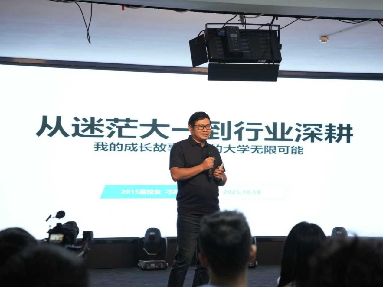 报告的最后,刁亮为同学们剖析了择业时对行业前景、平台潜力与培养机制的综合考量,并结合自己近十年来的人生关键节点事件,分享了工作之后的思考与感悟,同时从时间管理、人际关系及心理建设等方面给大家提出职业准备早期建议。他寄语学弟学妹:“技术是敲门砖,但企业更看重你的未来潜力,建议大家从大一开始便进行行业认知布局,踏踏实实学习好专业知识,珍惜社会实践及实习机会,把握学习和锻炼的机会。”