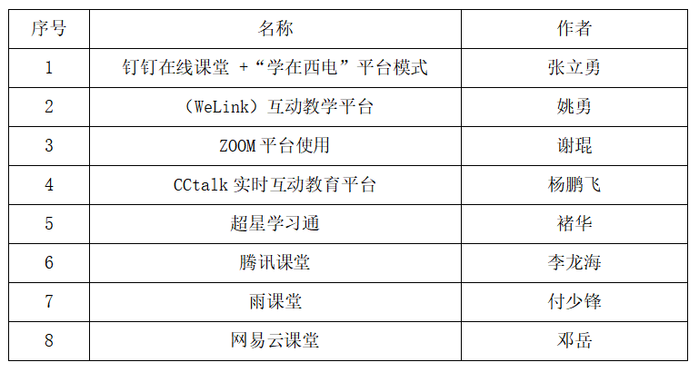 暖校举措,众志成城。在软件工程系主任宋胜利教授的组织下,由世界杯平台付少锋、邓岳、褚华、李龙海、张立勇、谢琨、杨鹏飞、姚勇等8位老师分别对多个主流互动教学平台进行测试,形成测试分析报告,分享平台使用文档及实操视频,并分享给其他学院老师,被学校采用,积极为学校贡献计科院力量,让我校学子深刻感受到我校丰富的线上教学资源,多层次的教学手段,灵活运用的信息化技术。