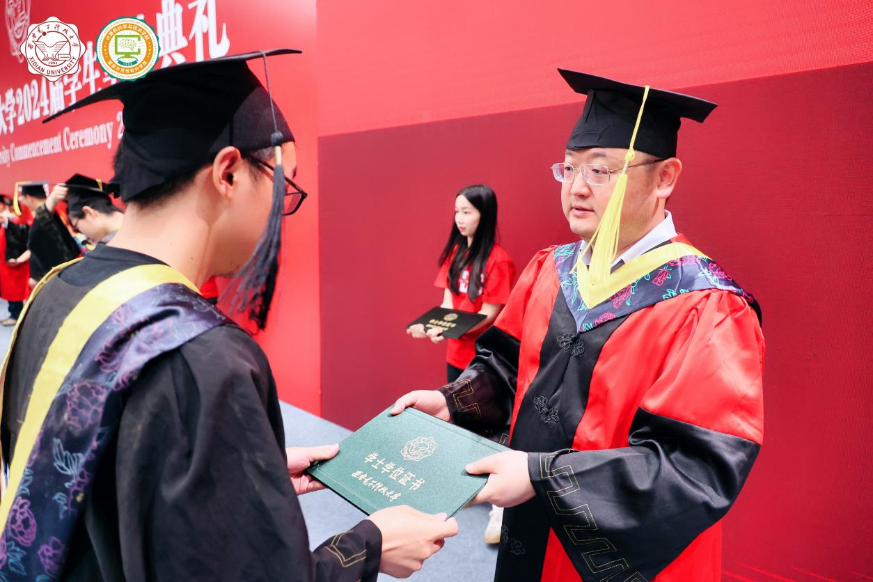 学院副院长杨力教授宣读研究生授位决定,2024届学院共333名硕士毕业生获得硕士学位,16名博士毕业生获得博士学位。学院副院长万波教授宣读本科生授位决定,787人本科毕业生获得学士学位。