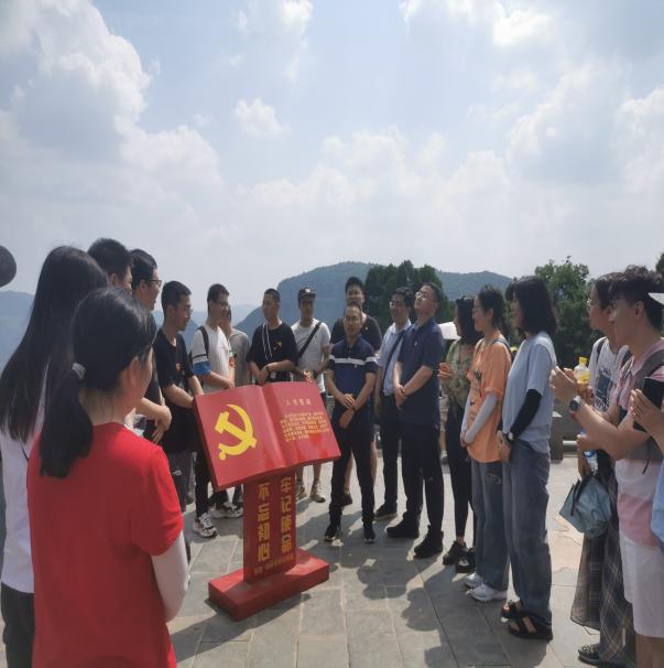 经过近1个小时的攀登,支部成员齐聚山顶,辅导员党支部书记梁双杰组织召开现场学习会。谈到:“我们走的是革命先辈用鲜血和汗水所铸就的道路,也许我们无法完全体会当年革命的艰辛,但必须谨记现有的和平生活来之不易,革命先辈为了国家利益、人民利益敢于牺牲一切的精神需要赓续传扬,希望每一位党员同志都能够进一步筑牢理想信念,努力在党史中汲取干事创业的奋进力量。