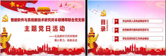 2020年3月27日下午,智能软件与系统新技术研究所本硕博师联合党支部开展了主题为“弘扬新时代科研精神”的线上主题党日活动。本次活动邀请了世界杯(中国)党委书记、智能软件与系统新技术研究所所长李青山老师,软件工程系主任、软件工程系党支部书记宋胜利老师,以及产教协同基地本硕博师第一联合党支部书记、智能软件与系统新技术研究所副所长李瑞老师参加。活动由支部书记王璐老师主持。