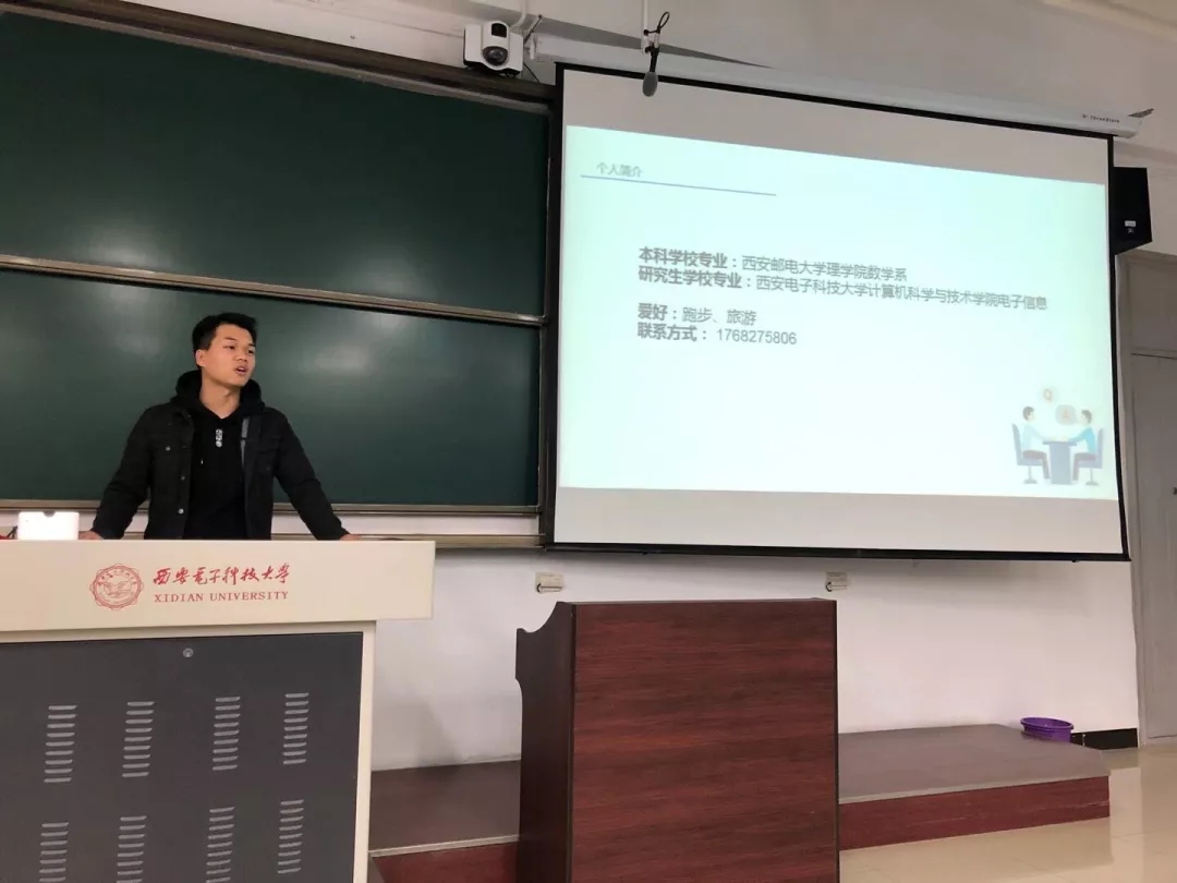 跨专业考入西电计科学院的陶知森,从考研的准备、初试、复试、经验四个方面详细的向同学们分享他的考研心得。他以自己的考研作息为例,鼓励大家踏踏实实的稳步向前。他认为,经验固然重要,但大家更多要结合个人实际情况,把握好自己的节奏,持之以恒、坚持到底。他说:“要放平心态,不骄不躁,学会与自己相处,不要自我感动,既要顶得住诱惑,也要耐得住寂寞。”