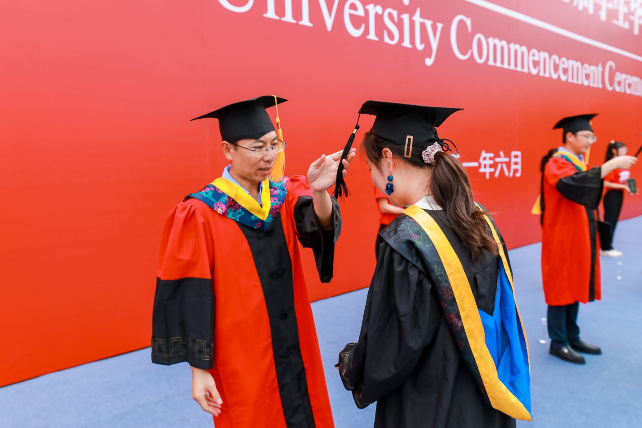 上午9时30分,伴随着一曲激昂的歌舞《绚丽之花,青春绽放》,世界杯(中国)本科毕业生学位授予仪式在南校区礼仪广场拉开帷幕。
