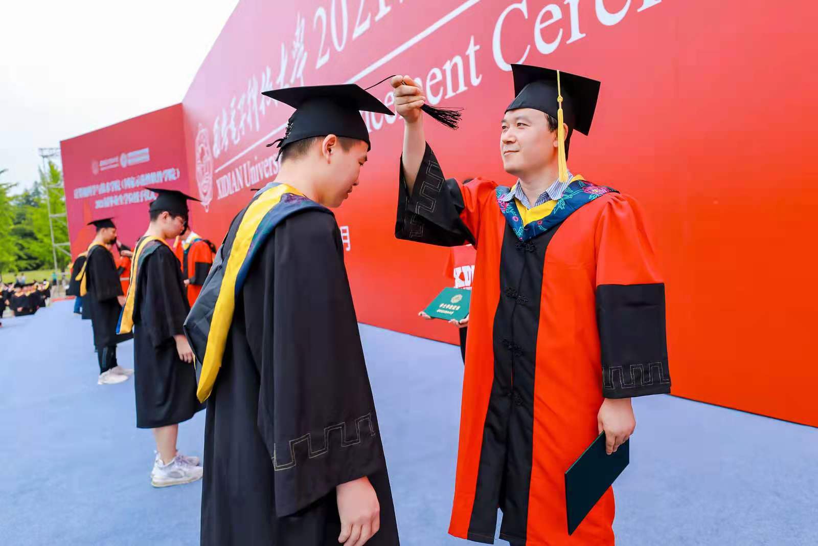 仪式最后,毕业生代表上台向领导、教师代表和辅导员献上美丽的鲜花,表达崇高的敬意。师生纷纷合影,记录这珍贵的一刻。世界杯(中国)2021届毕业生学位授予仪式在深深祝福和依依不舍中圆满落下帷幕。