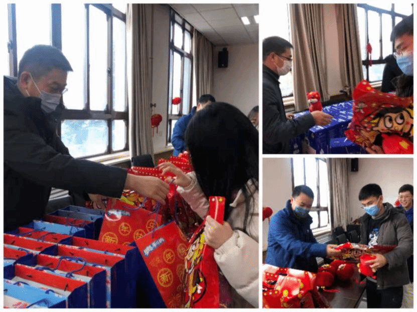 临近除夕,为了让留校的同学们过好年,学院为同学们准备了满满的惊喜,送来新春的祝福。在南校区丁香11号楼大厅,学院党委书记李青山、副书记张莹莹、副院长万波,来到学院迎新春活动现场,和一线学工干部一起为同学们发放了新春大礼包,竹园1号书院副书记吴微参加了慰问活动。李青山代表学院班子为同学们送上新春的祝福。他谈到,因为疫情、学业等原因,今年部分同学留校过年,为了让同学们能过好这个年,学校努力做好各种保障,用心开展丰富的活动。希望同学们积极参与,祝愿大家在学校度过一个开心难忘的新年。同学们纷纷表示感谢,也对各位老师表达新年的祝福。
