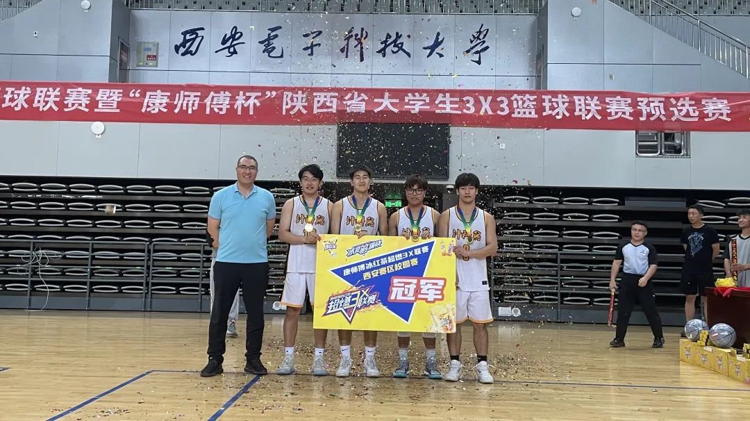 (通讯员  袁权)5月29日下午,西安电子科技大学2022年“西军电杯”三人篮球联赛暨“康师傅杯”陕西省大学生3X3篮球联赛预选赛,经过两天赛程在南校区远望谷体育馆落下了帷幕。由余楷、张凯歌、金熙、谢家齐四名同学组成的世界杯(中国)男篮队以全胜战绩挺进总决赛,并在与电院战队的激烈角逐中以15-5比分赢得决赛、捧得冠军,并将代表我校参加陕西省大学生篮球联赛。世界杯(中国)也喜获该联赛团体总分一等奖。