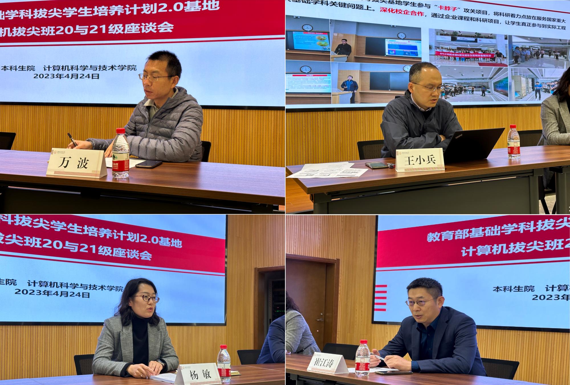 计算机科学拔尖学生培养基地2021年获批教育部基础学科拔尖学生培养计划2.0基地,为校内唯一国家级拔尖基地。基地依托计算机科学与技术国家双一流建设学科,涵盖了计算机科学与技术、智能科学与技术、信息安全等面向国家重大需求的专业。本次座谈会充分探讨了计算机拔尖班在实施过程中的高阶性、深层次需求,学校和学院将不断优化各级配套政策,帮助拔尖班同学更好的开展学业规划,提升综合素质,为未来从事基础科学研究奠定基础。