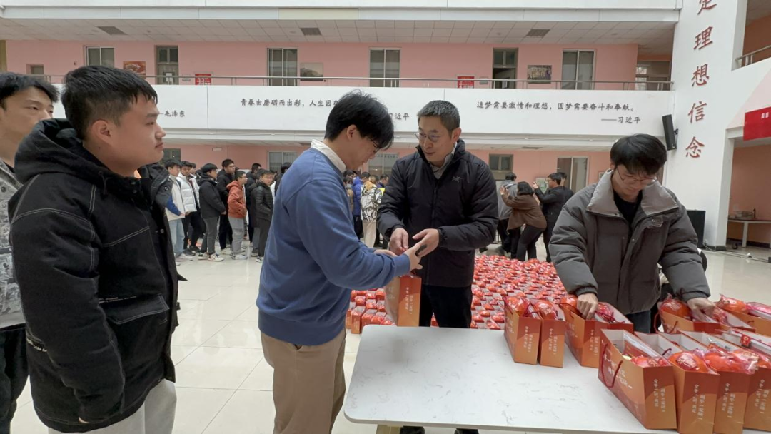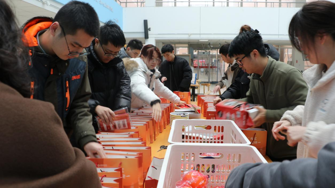 为给考研学子们提供关怀与支持,学院组织开展“研途有你,加油包送心意”活动,特准备了含有一战“橙”硕—脐橙、诸事顺“愿”—薯愿、“士”气加倍—士力架、好运“旺旺”—旺仔牛奶、学院师生手写祝福明信片等物品的“暖心加油包”。
