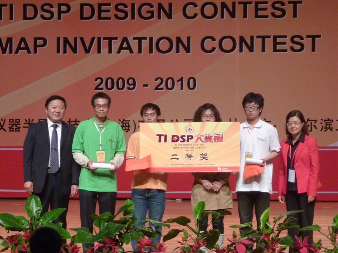 2009-2010 TI DSP 大奖赛于2010年5月20日在哈尔滨工程大学举行。世界杯平台学生朱萌、唐铭谦、蒋云晶三位同学成功入围决赛。经过两天时间的角逐,通过初审答辩和复审答辩,最终,项目《重要内容无畸变的视频图像非等比例变换方法研究》获得算法组二等奖,一等奖分别由清华大学和复旦大学研究生夺得。