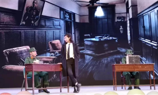由190312团支部、190308团支部合作表演的话剧《夜莺》,致敬经典话剧《永不消逝的电波》,生动展现了老一代共产党人为革命事业不怕牺牲、视死如归的家国情怀。话剧演员们的精彩表演引人入胜,急促的电波声萦绕现场,革命英雄先辈用生命传递情报,把一切奉献给了革命事业的情怀让现场学子不禁动容。