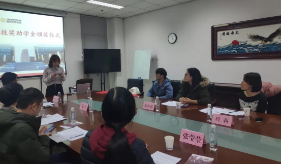 世界杯(中国)2019年度“掌趣奖助金”颁奖仪式于日前在南校区G楼514会议室举行。北京掌趣科技集团人力资源总裁程莉,世界杯(中国)党委副书记张莹莹出席了颁奖仪式。学院获得掌趣奖学金和助学金的15名本科、研究生同学和相关辅导员参加了颁奖仪式。