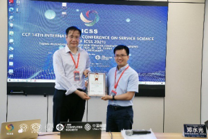 5月16日下午的闭幕式由北京邮电大学王尚广教授主持。武汉大学李兵教授与西安电子科技大学宋胜利教授颁发了大会最佳论文奖与最佳学生论文奖。本次会议的最佳论文为“DeepQSC: a GNN and Attention Mechanism-based Framework for QoS-aware Service Composition”(Xiao Ren, Liang Bao, Jinqiu Song, Shuai Wang and Rong Cao),最佳学生论文为“Meta-process: a noval approach for decentralized execution of process”(Lei Fang, Zhongguo Yang, Shenghui Qin, Mingzhu Zhang, Sikandar Ali and Zhuofeng Zhao)。西安电子科技大学李青山教授颁发了单位贡献奖,获奖单位为东南大学与重庆大学。大会程序委员会主席王忠杰教授做了总结发言,一方面再次感谢了参会代表对于CCF ICSS支持,以及西安电子科技大学组委会细致全面的组织工作,另一方面,也希望大家继续关注国内服务计算领域的发展,继续为服务计算领域贡献研究成果与青年人才。
