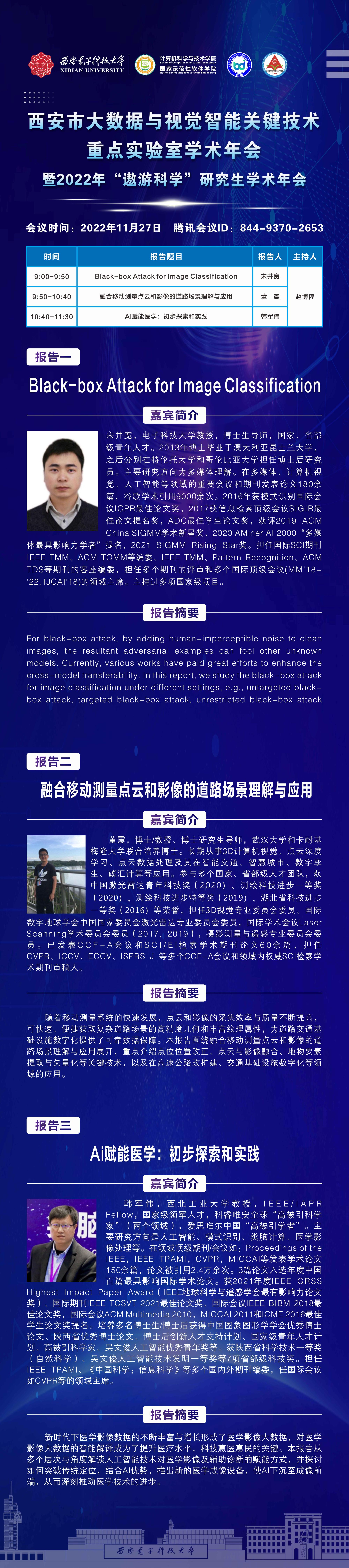 西安市大数据与视觉智能关键技术重点实验室学术年会暨2022年“遨游科学”研究生学术年会报告会预告(四)