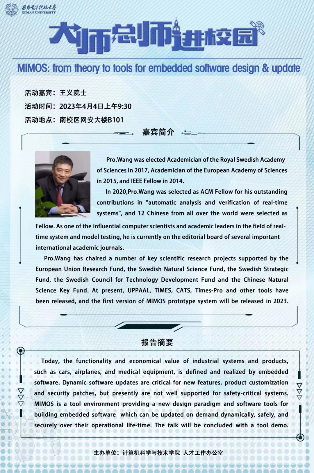 欧洲科学院院士王义4月4日上午来校讲座预告