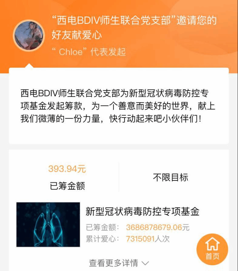 同时,支部成员也积极通过民政部指定互联网募捐信息平台为武汉市慈善总会的新型冠状病毒肺炎防控专项基金进行募捐,为防控新型冠状病毒肺炎疫情贡献了支部的一份力量。