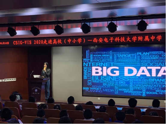 1月10日下午,杨鹏飞老师走进西电附中,这是本校的附属中学,从西电附中走出而后又入西电读大学的学生不计其数,这是一种教育理念的传承。杨鹏飞老师结合其在大数据领域的科研教育经验向附中的学子们宣传了大学先进的教学方式和社会主流技术应用方向。希望附中的学子们砥砺前行,从中学起就传承西电精神,为祖国建设,为中华民族伟大复兴而努力!随后,特邀嘉宾深圳大学陆旻副研究员以“不容小’视’—— 数据可视化”为题,对数据可视化和大数据的发展进行了科普讲解,使得同学们对可视化与可视分析有了初步的了解。