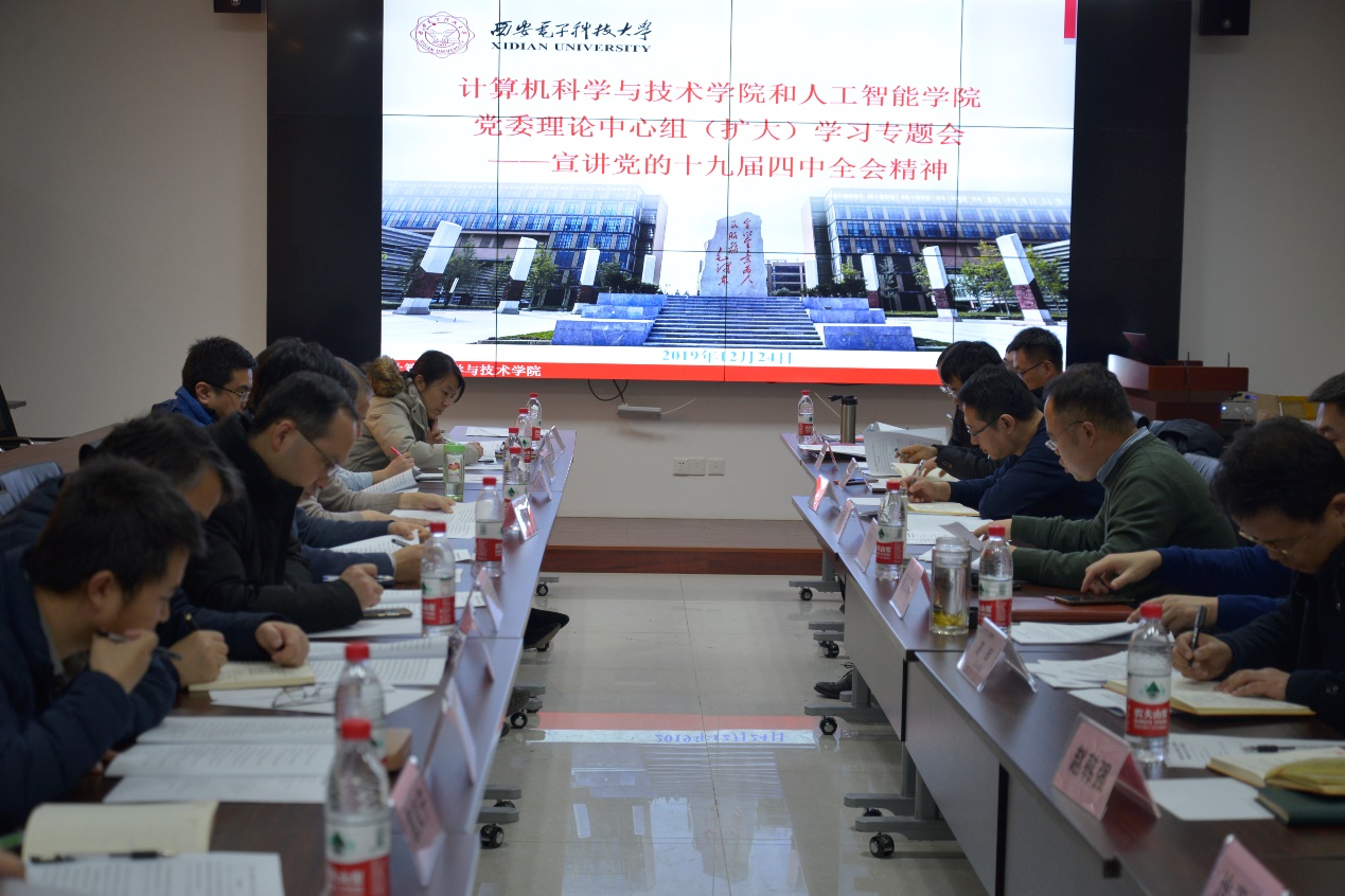(通讯员 同榛)12月24日下午,世界杯(中国)和人工智能学院党委在北校区主楼二区319会议室召开理论中心组(扩大)学习会议,专题宣讲党的十九届四中全会精神。世界杯(中国)和人工智能学院党政班子成员参加了集体学习,两学院两委委员、教职工党支部书记、基层系所负责人等列席会议。会议由人工智能学院党委书记魏峻主持。