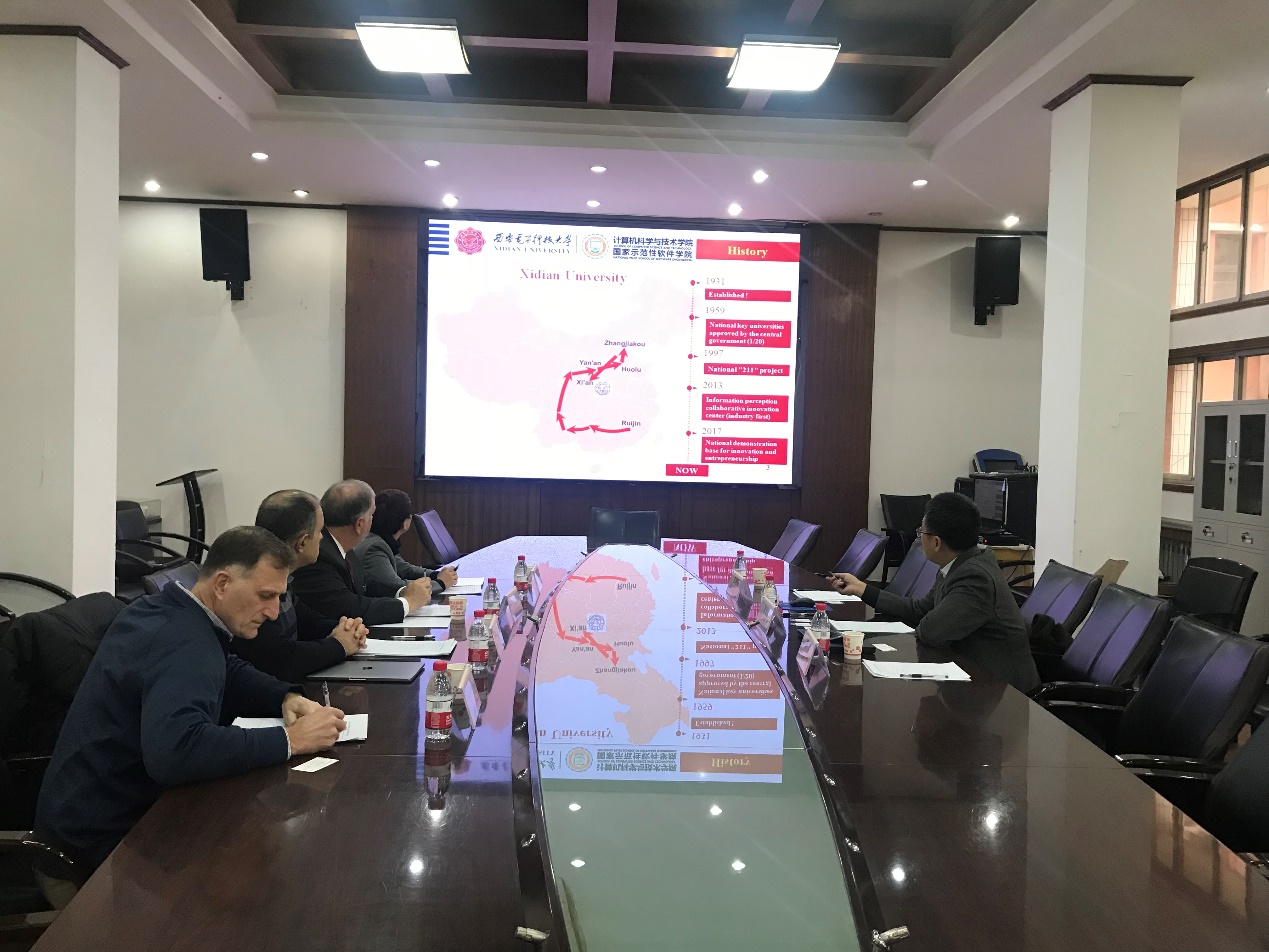 (通讯员 马丽叶 王晓丽)2018年12月7日上午,美国密苏里大学堪萨斯分校副校长Kevin Truman教授一行来访我校。计算机学院苗启广教授首先介绍了西电的历史和计算机学院的发展史,以及西电的国际合作与交流项目。然后Kevin Truman教授介绍了美国密苏里大学的相关情况。随后副校长石光明在北校区办公楼会客室会见了代表团,国际合作与交流部郭彤副处长和世界杯(中国)代表参加了会见。